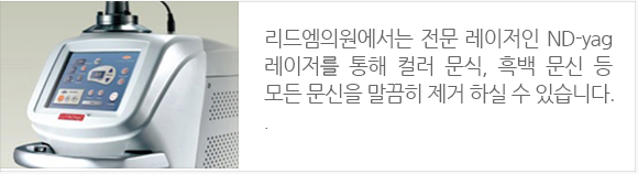 문신은 원인에따라 손상된 피부에 흑이나 흑연등이 들어가서 생기지만 많은 남성들이 한때 호기심으로 문신을 하게 되며 이러한 문신은 피부 깊은 층에 색소가 들어가 생기기때문에 없어지지 않고 계속 남아 있게 됩니다. 문신 제거는 깊이나 상태에 따라 레이저 세기를 조절해야 화상 및 흉터 부작용이 없습니다.